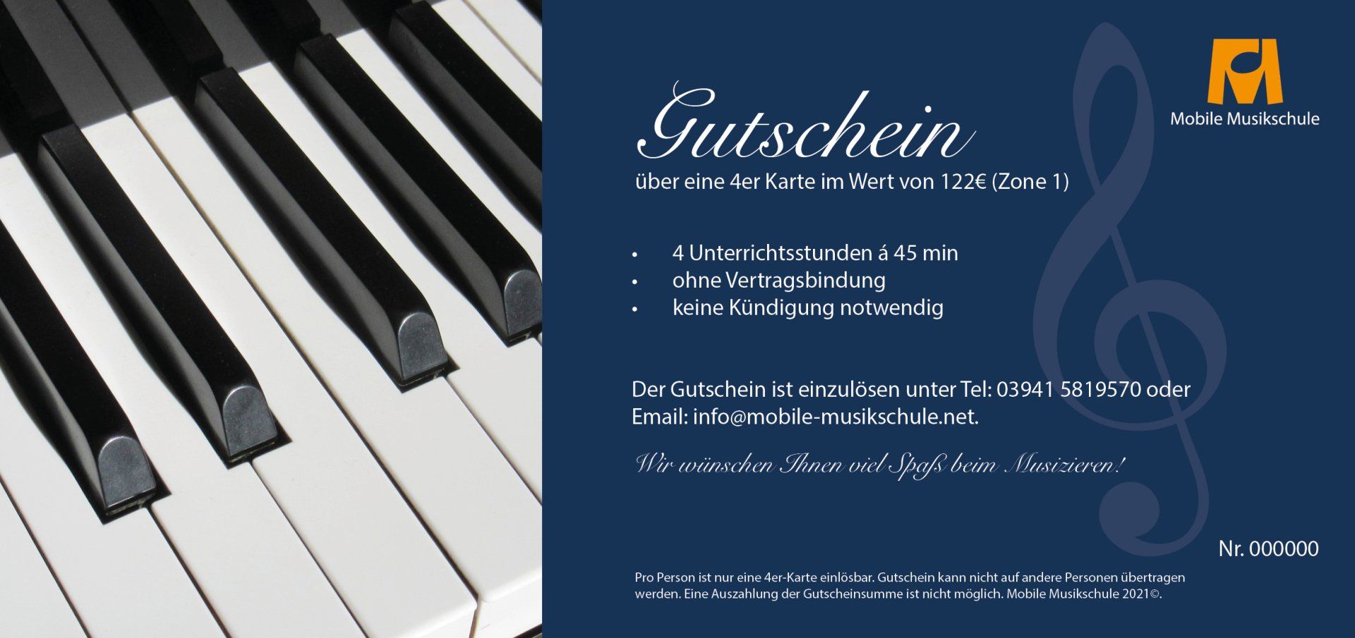 Verschenken Sie vier Stunden mobilen Musikunterricht (45 oder 60 Minuten) – ohne Vertrag, ohne automatische Verlängerung, ohne Risiko. Ihre Liebsten entscheiden selbst, wann und wo die Stunden stattfinden – ein Geschenk voller Kreativität und Spaß.